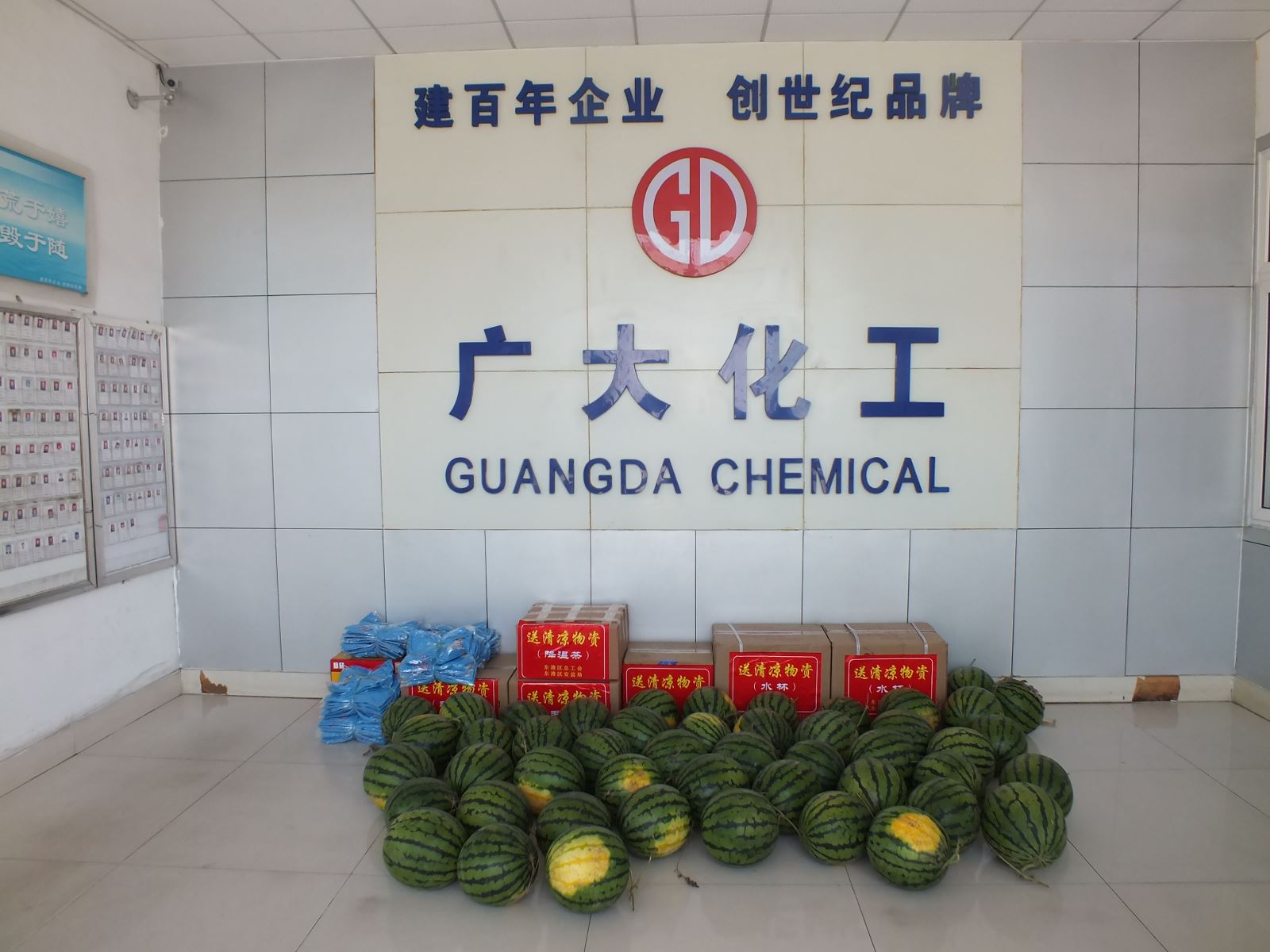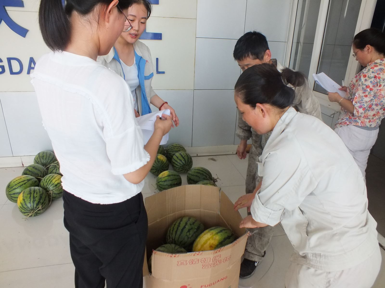經(jīng)過一上午的準(zhǔn)備,所有的西瓜在整齊擺放,讓員工們第一時(shí)間吃上清涼可口的西瓜,緩解炎熱高溫帶來的疲憊。